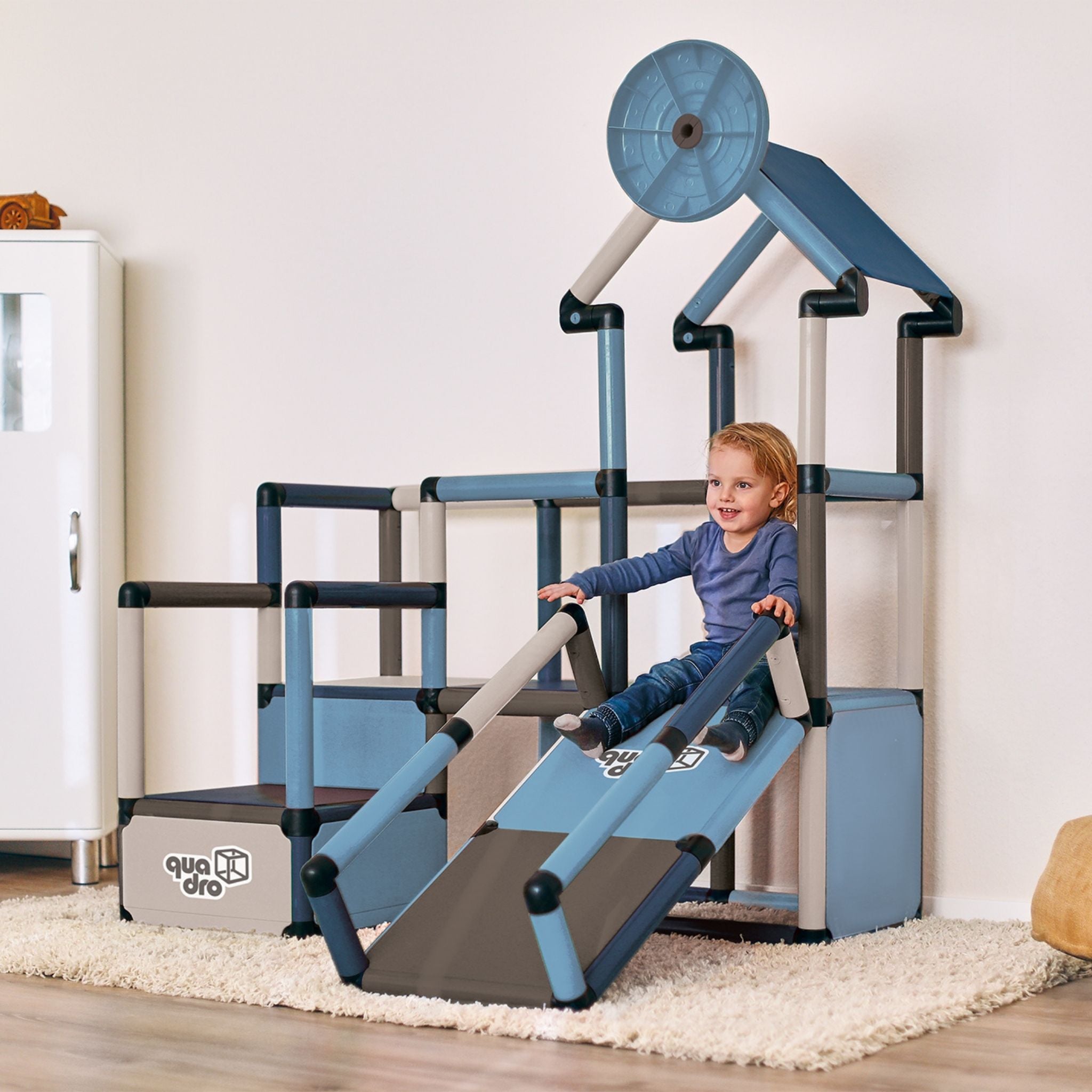 “Mit dem Baukasten Evolution sind wir einen ganz neuen Weg gegangen. Beim Beobachten meiner 6 Monate alten Tochter ist mir aufgefallen, dass bereits ab diesem Alter ein Spielzeug wie QUADRO ideal ist, um erste Bewegungsabläufe gezielt und in sicherer Umgebung trainieren zu können. Ich bin jeden Tag vollkommen verblüfft, wie schnell die Entwicklung so kleiner Kinder vorangeht. Der Evolution hält mit dieser Geschwindigkeit mit, da er jede Entwicklungsstufe mit einer dazu passenden Spielidee unterstützt.”