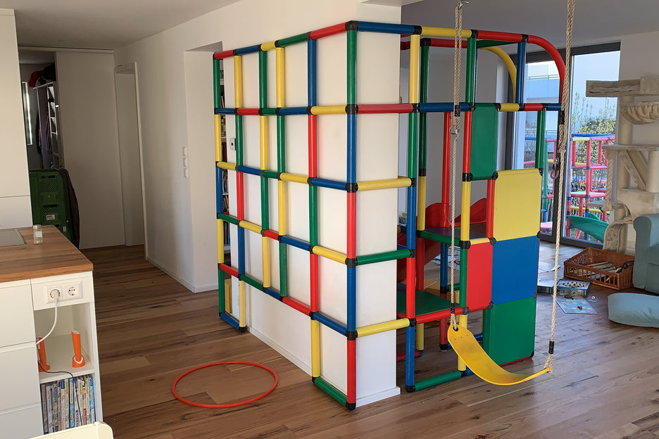 Jedes Kinderzimmer und jeder Garten wird durch das farbenfrohe Design aufgewertet. Das Möbel Kit S verfügt über insgesamt 169 Einzelteile inklusive Aluminiumprofil und Spielsack.