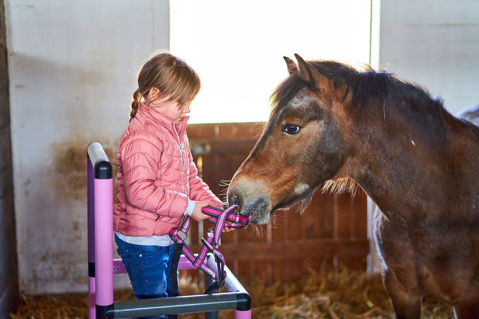 Wenn Lara bei ihrem Pony Mira ist, bedeutet das Abenteuer pur. Was der Lernturm von QUADRO damit zu tun hat, liest du in unserem Blogartikel.